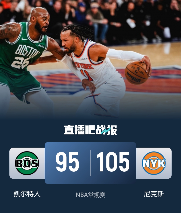 尼克斯轻取凯尔特人 布伦森31+5 唐斯26+13 布朗23分